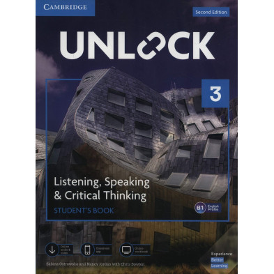"Unlock 3 Listening, Speaking & Critical Thinking - Student's Book + Digital Pack" es un libro publicado por Cambridge University Press que está diseñado para su uso en aulas de inglés. Está destinado a estudiantes que tienen un nivel avanzado de dominio del inglés.